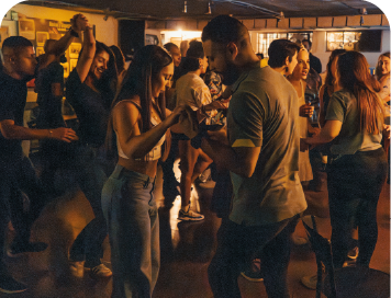 Con mucha energía para bailar y socializar